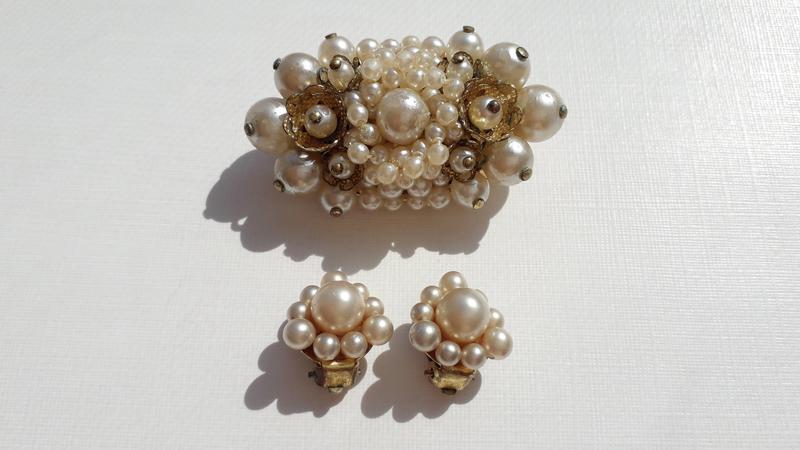 Перловий набір кліпси +брошка. Брошка 5 см, кліпси 1,5 см Стан на фото. Відправлю Укрпошта, Новою поштою, належить на карту.