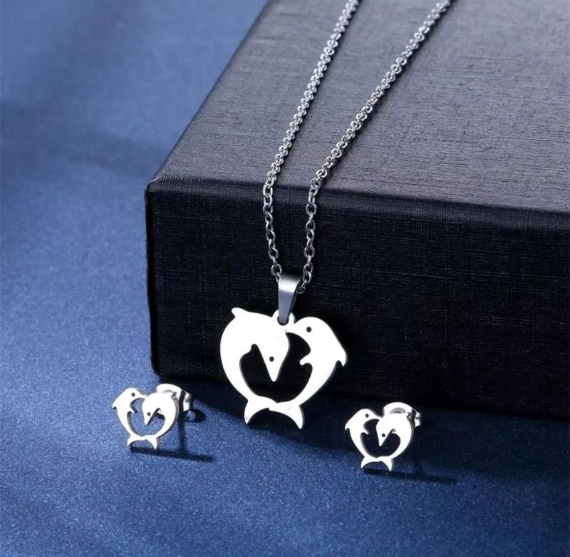 Набор дельфины серьги и подвеска из нержавеющей стали медсталь медсталь медзолото пусеты г...