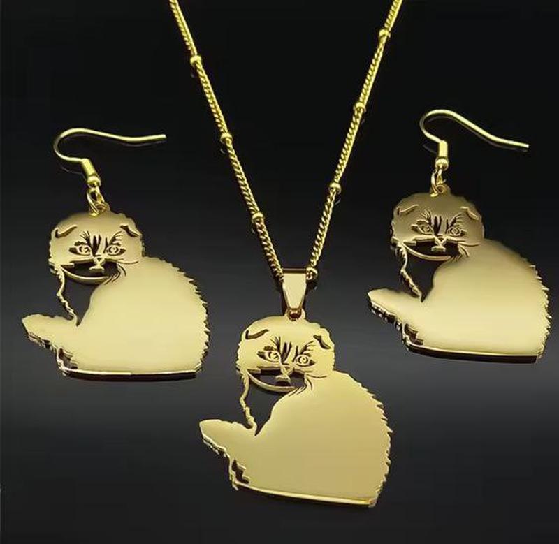 Набір, сет прикрас, сережки, ланцюжок підвіска котик, киця, шотландська. медзолото