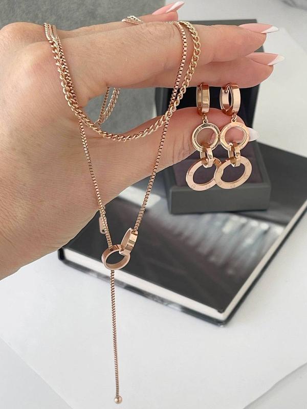 Набір медсталь, подвійне кольє ланцюг, довгі сережки підвіски, картьє картье