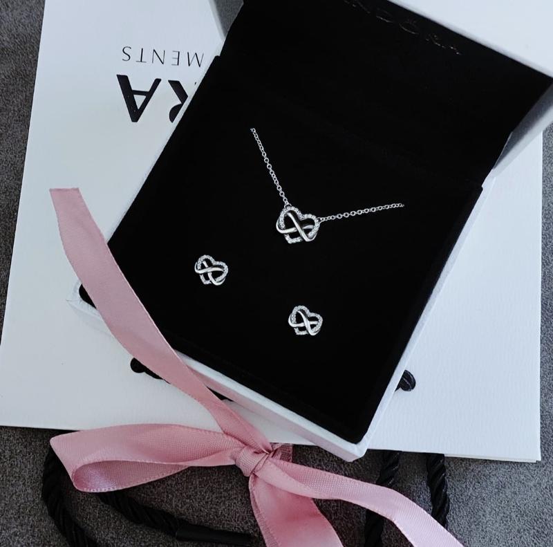 Набір комплект пандора Pandora, новий, безкінченність. Сережки, колье, коробочка. Пересилаю укр, нова пошта.