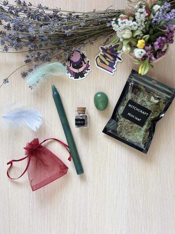 🌿 У наборі: • Темно-зелена свічка — колір росту, сили, життєвої енергії та зцілення. Ідеальна для ритуалів на оновлення, фінанси та відновлення балансу • Амулет з авантюрину — камінь лідерства, впевненості та внутрішнього піднесення. Допомагає долати страхи та сумніви • Сушена м’ята — символ свіжості, очищення, активізації мислення та нових починань. Добре працює як у обрядах, так і для обкурювання простору • Флюорит у відьминій колбі — мінерал з фокусом на розумову ясність, зняття напруги, підтримку в періоди змін і прийняття важливих рішень 💫 Рекомендовано для: • очищення ментального простору • початку нового етапу життя • енергетичних практик на силу та ясність • повернення внутрішньої стабільності Нехай твоя сила повертається з новою потужністю 💚