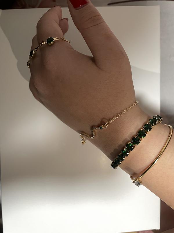 Браслети мають гарну якість, не темніють та не залишають слідів на руці, у кольорі золота, з білими та зеленими камінцями, красиве- для красивих дівчат❤️