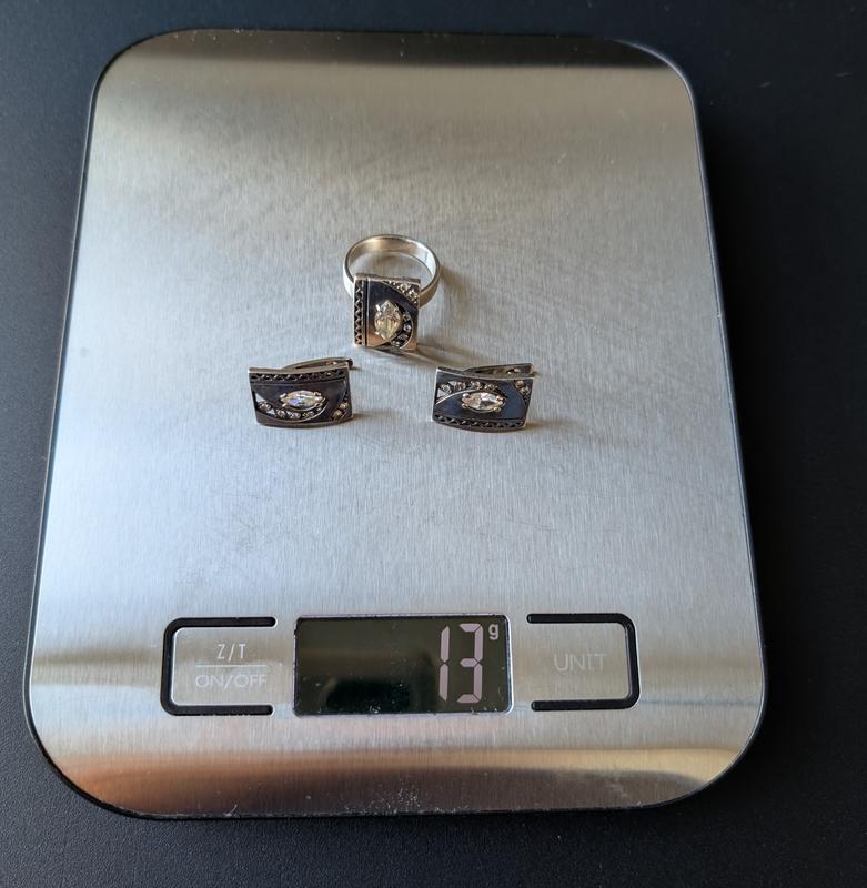 Срібний набір кульчики і каблучка Вага 13г Розмір перстня 18 Ціна 950 грн