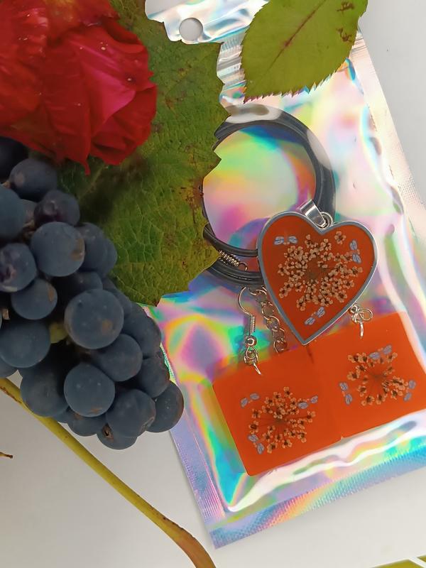 Комплект прикрас із квітами буркуну Стане чудовим доповненням до колекції, або ж гарним подарунком для близької людини. Виготовлені методом заливки ювелірної епоксидної смоли. Виріб легкий і довговічний. Ювелірна смола відрізняється прозорістю і стійкістю до УФ - променів, тому ніколи не втратить блиску. Фурнітура виконана з медичного сплаву, тому не піддається корозії.