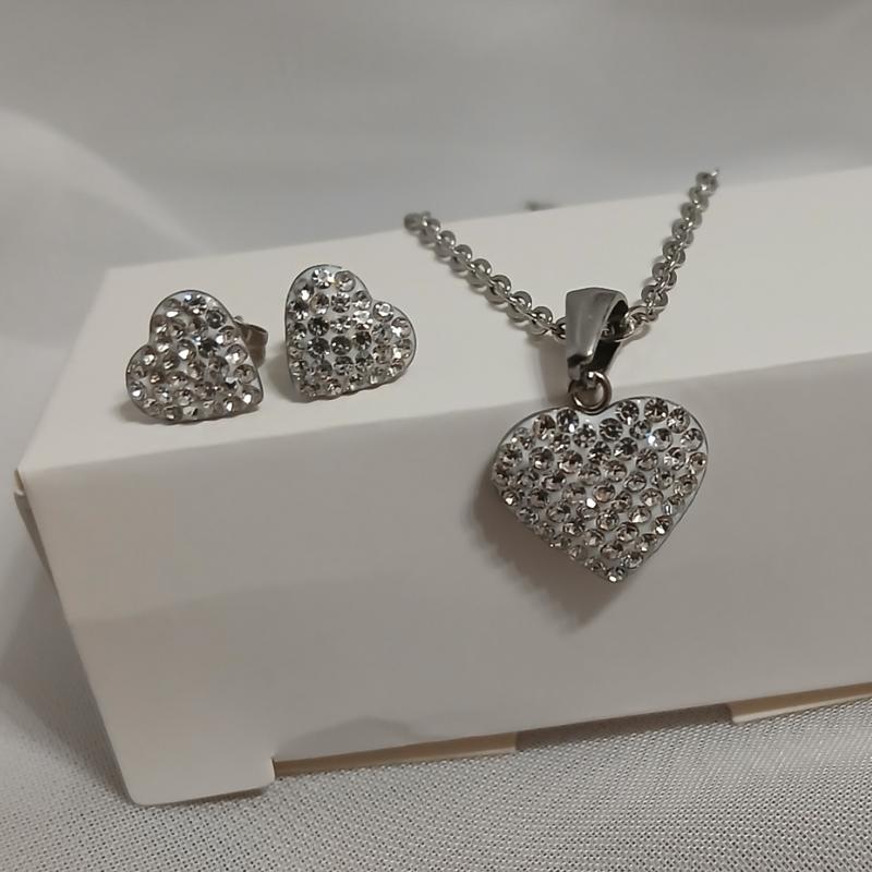 Набір прикрас сердечко із медсталі нержавіючої сережки підвіска серце комплект