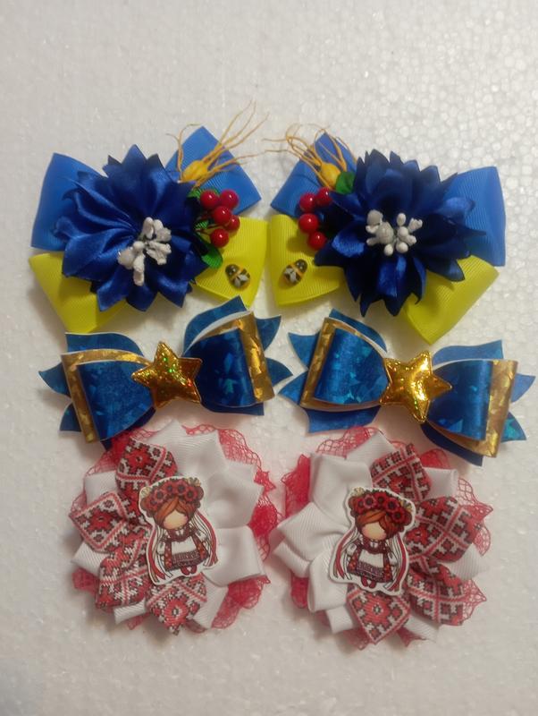 бантики для волосся на заколочках, патріотичні бантики,в наборі,3 пари. ручна робота ціна набору-250 грн
