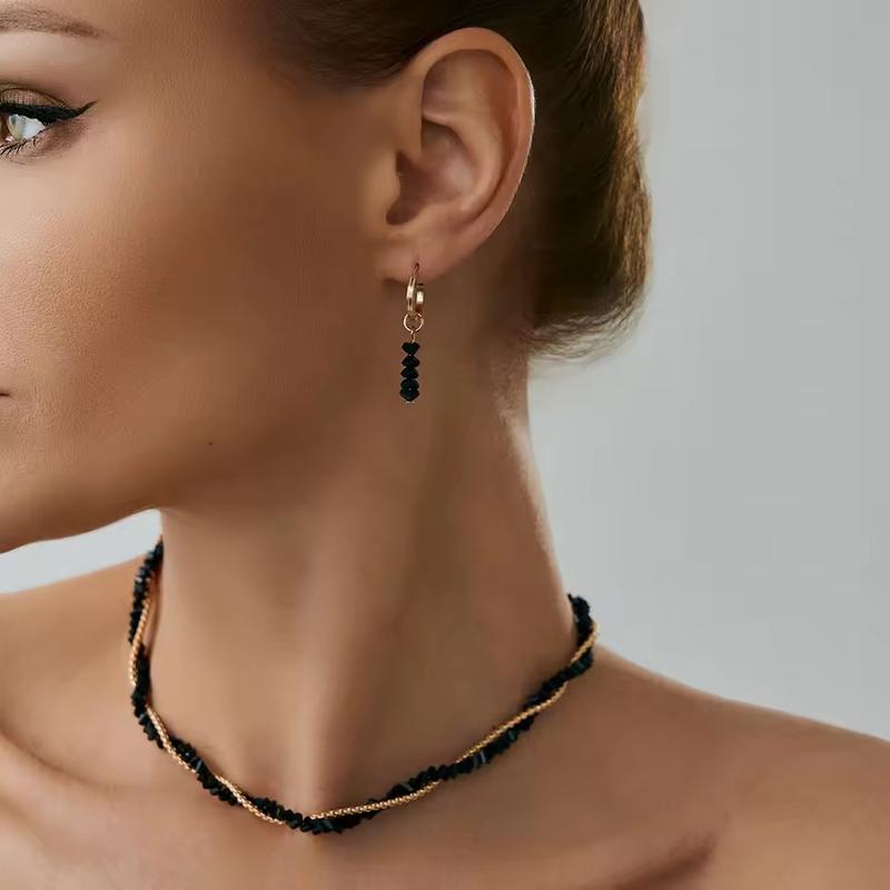 Акція! БЕЗКОШТОВНА ДОСТАВКА на замовлення біжутерії на суму від 1000 грн. (До відділення пошти або поштомат). Акція діє при оплаті на реквізити Останнє фото з заміром Зручний і лаконічний комплект чудово підходить як для щоденного використання, так і для особливої нагоди завдяки елегантному поєднанню чорних і золотих елементів. Компактні сережки та мінімалістичне кольє легко комбінуються один з одним або з іншими виробами. Практичність аксесуарів дозволяє зробити швидкий акцент у будь-якому стилі — від класики до сучасної простоти.