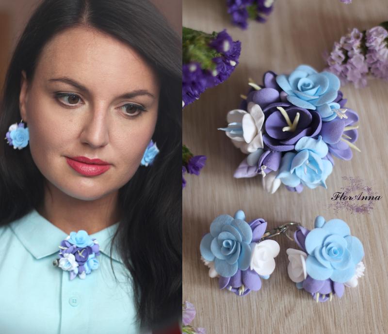 Гарний, ніжний і класний комплект прикрас "Бузковий бриз" зробить твій образ оригінальним і стильним. Композиція складається з троянд ніжного блакитного кольору, фрезій бузкового кольору. Кожна квіточка сліплена вручну з самовиверджувальної полімерної глини decoclay. Розмір броші 5 х 5 см Під замовлення можливі: -браслет -кулон -ободок Квіти можна зробити в будь-якому кольорі Оформляем заказ "КУПИТИ" і в коментарях до замовлення демонструє колір. Приклад: Квітка: півонія біла, фрезії айворі (2), бутони зелений (3)