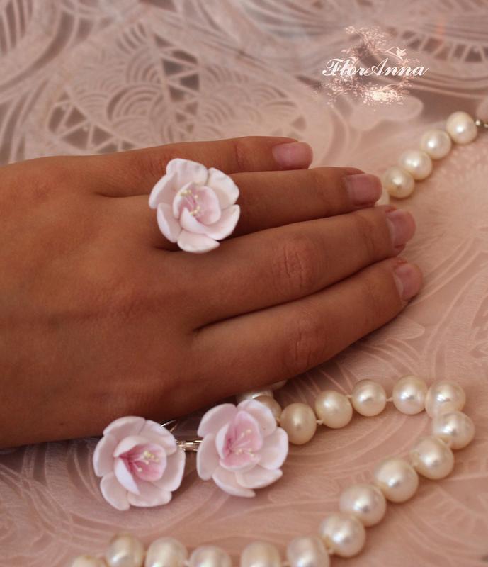 Чарівні квіти сакури для ніжного образу. Наші квіти зліплені з дуже легкої і дорогий японської полімерної глини decoclay. Серединка сакури розписана акриловими фарбами. Розпис оживляє квіточки і робить їх повітряними. Під замовлення можливі: -браслет -гребінь -шпильки -ободок