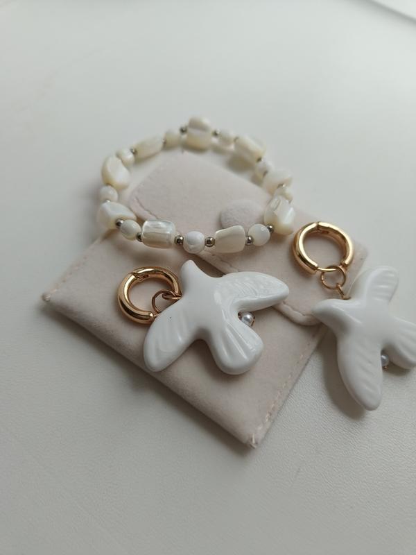 Набор украшений Голуб, горлица. Серьги 3см. Гипоаллергический сплав. Браслет без размерен