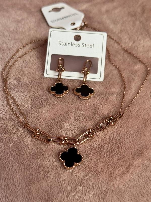 Набір прикрас сережки намисто ланцюжок підвіска цепочка у стилі ван кліф з конюшиною чорно...