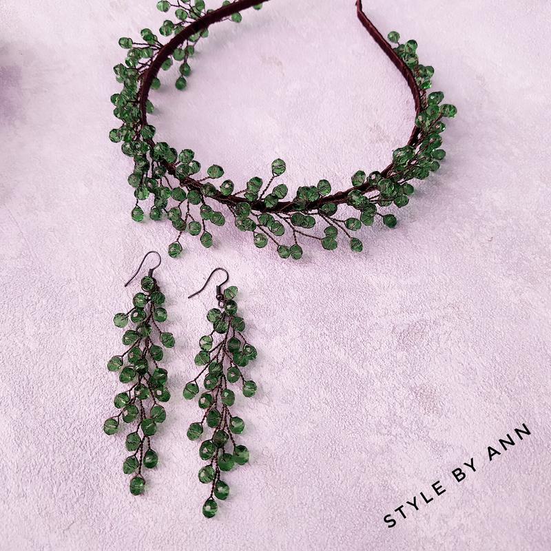 Набір створений з кришталевих намистин і ювелірної дроту. Так само можливий в іншому кольорі.