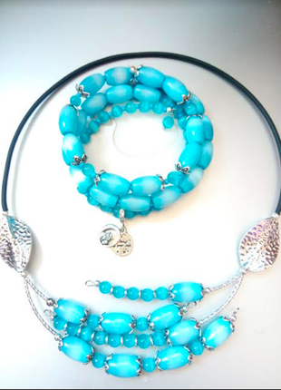 Авторські прикраси ручної роботи з натуральних каменів . Набір розбиваю. Чокер,браслет , підвіска на ланцюг, каучук ,шкіряний шнур і т. п.,сережки . Чокер на дроті з пам'яттю, каучук , котяче око , бісер Японія і посеребряная фурнітура . Швензи можна замінити , за бажанням замовника , на срібло 925. Стоимоть виробів змінюється , як у бік здешевлення , так і в бік подорожчання ,в залежності від використовуваних матеріалів. Стовідсоткові повтори неможливі .