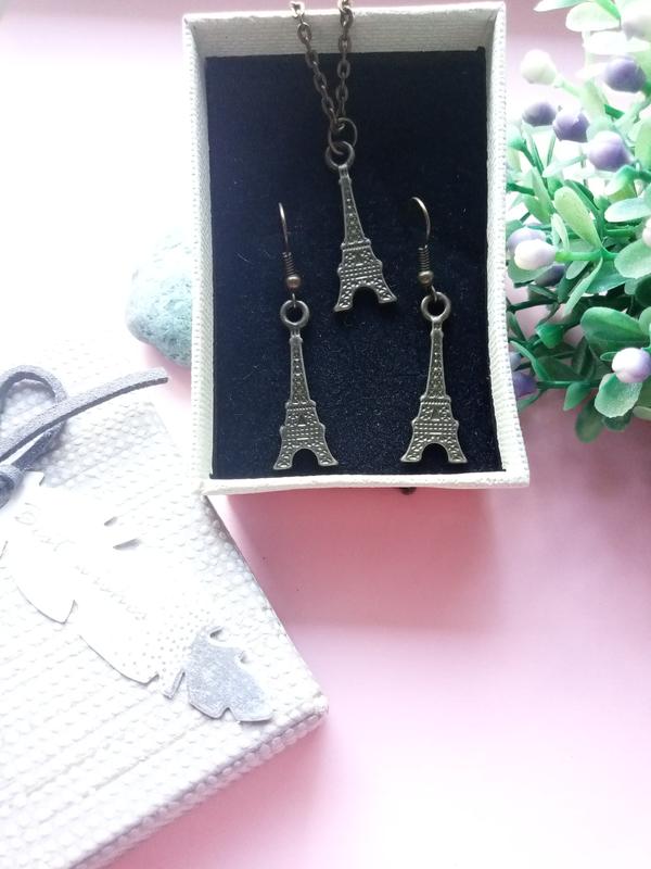 набір кулон і сережки Ейфелеві вежі, колір під бронзу, біжутерія, в подарунковій коробочці
