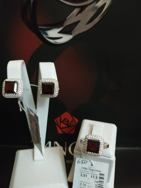Набір срібний з фіанітами та гранатом. Сережки-1900, каблучка-1400. Каблучка 17,5. арт. 1105. Каблучка іншого розміру під замовлення. Дуже гарний набір. Можна придбати окремо.