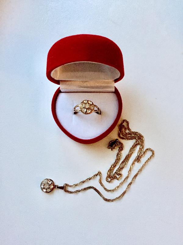 Комплект біжутерії с18 каратним покриттям золотом {на язичку маркировка18KRGP}. Довжина ланцюжка 50 см, розмір кільця 16,5-17