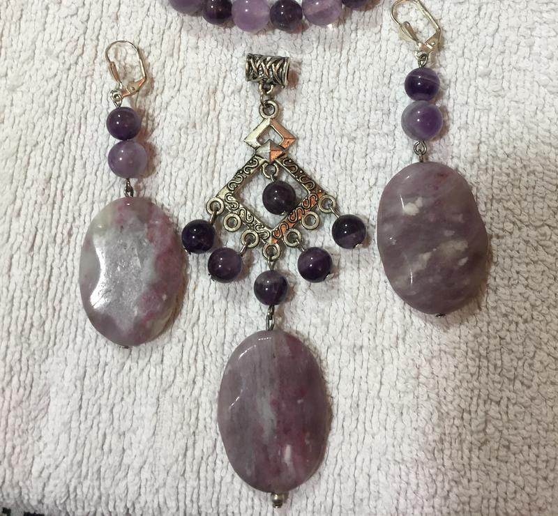 Сережки: з дрібних намистин і великого каменю, довжина 7,5 см; подивись: з дрібних намистин і великого каменю, довжина 10 див. натуральні Камені.