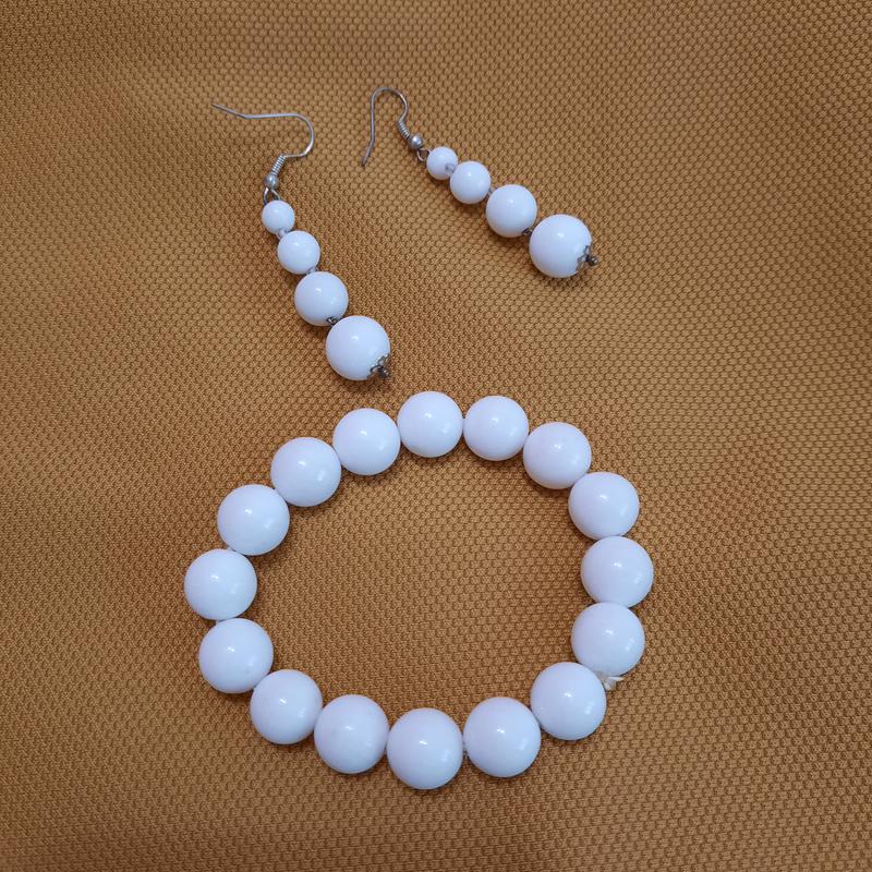 Набір білого кольору сережки і браслет. Браслет на гумці