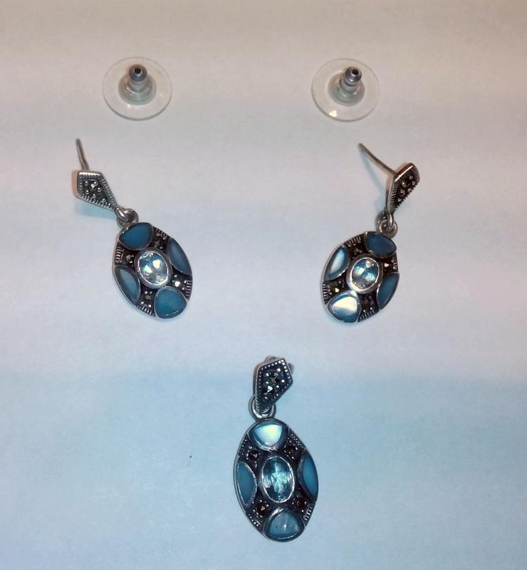 Сережки і кулон виробництво Таїланд з блакитним топазом. Срібло