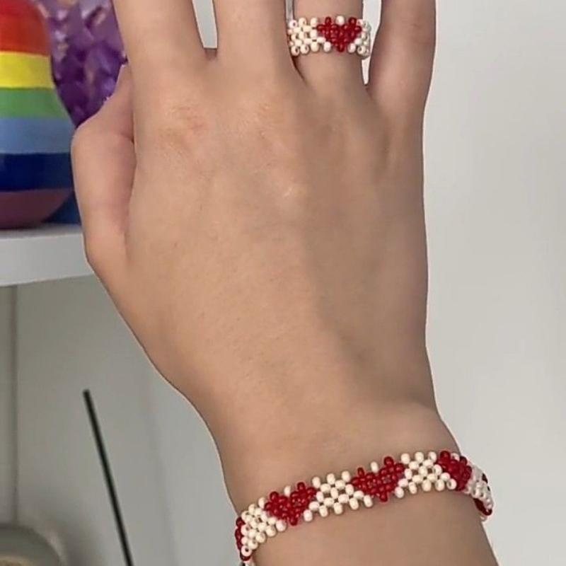Набір з кільця і браслети. Робимо під замовлення за вашими розмірами. Можна вибрати інший колір бісеру.