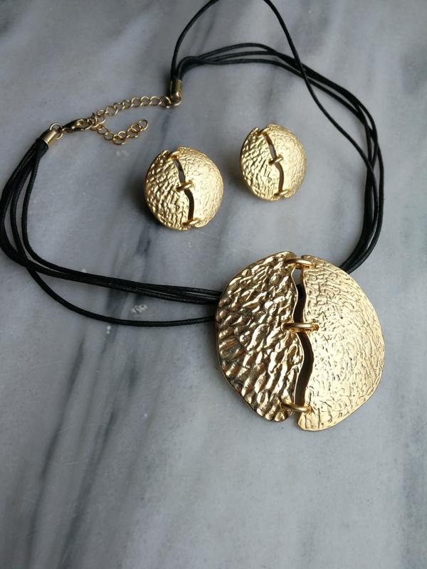 Комплект набор оригинальный минималистичный текстурный кулон круглый серьги гвоздиком