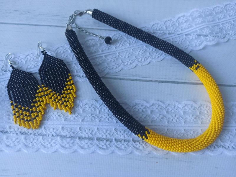 Шикарний набір прикрас із бісеру ручної роботи! Можливе виготовлення в інших кольорах! Довжина джгута регулюється!