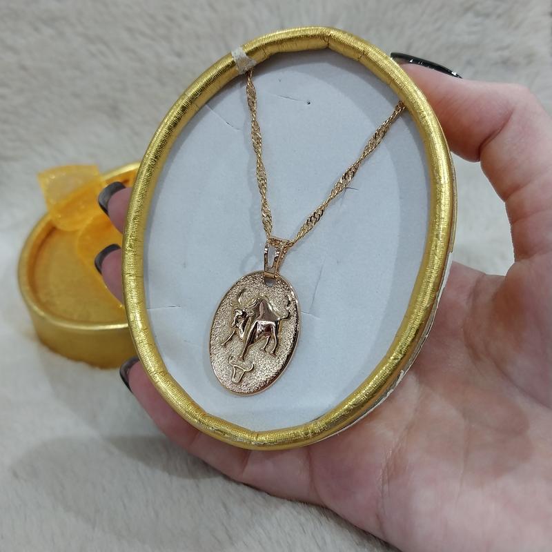 Вишуканий кулон "Золотий Телець медальйон Шагрень" на ланцюжку з ювелірного сплаву - елегантний подарунок дівчині, подрузі, колезі по роботі, красиво упакований у коробочці Всесвітньо відомий бренд ****** ******* - виробник ювелірної біжутерії преміум-класу знову тішить нас новинкою: кольє з кулоном з символікою знака зодіаку Телець на стильному ланцюжку з медичного сплаву з покриттям золотом. Знак зодіаку Телець, зображений на кулоні, нагадує нам про якості цього знака: завзятість, витривалість, наполегливість і стійкість. Цей кулон стане чудовим подарунком для будь-якої людини, яка народилася у знаку Тельця, а також для людей, які прагнуть розвивати ці якості в собі або хочуть звернути на них увагу. Кольє - це не тільки гарна, а й знакова, символічна і надійна прикраса, яка радуватиме свого власника протягом багатьох років! Ось наші авторські фото та відео, зняті з реальних моделей та прикрас: Наші авторські фото та відео охороняються законом! Прикраси ****** ******* - це високоякісна ювелірна біжутерія преміум-класу, яка дуже точно імітує ювелірні золоті вироби. Ці брендові прикраси від Ксюпінг в побуті в народі часто називають медичний сплав, медичне золото або медзолото, а також медична сталь або медсталь. Камені у прикрасі: синтетичні діаманти - циркони чи фіаніти; вони не відрізняються неозброєним оком від природних і мають аналогічну форму, огранювання та блиск з характерним внутрішнім відображенням та заломленням, грають усіма кольорами веселки при яскравому освітленні! Усі вироби проходять сертифікацію та є повністю безпечними у використанні. Властивості медичного золота - Завдяки унікальному покриттю довго не втрачає благородного вигляду - Ідеально підходить для тих людей, у кого організм не сприймає жодного іншого металу, крім золота - Не викликає алергічну реакцію навіть у дітей та алергіків - Не боїться високої та низької температури повітря; сонячних променів - Не облазить, не окислюється, не іржавіє і не чорніє навіть від впливу води - Не залишає слідів на шкірі Догляд за ювелірною біжутерією Вироби будуть довгий час радувати своїх власників при правильному догляді - необхідно берегти від сильних механічних навантажень (тертя і тиску, ударів, подряпин тощо) та контакту з агресивними хімічними речовинами (особливо з хлором та сіркою, ртуттю та йодом - як і для золотих прикрас) - слід знімати прикраси перед миттям посуду, прибиранням із застосуванням побутової хімії - для продовження терміну носіння постарайтеся знімати біжутерію перед сном Для очищення від забруднень промийте виріб у воді з рідким милом або шампунем (можна використовувати м'яку зубну щітку) та витріть м'якою сухою ганчірочкою Оформлення прикраси в базовій комплектації наочно показано на головному фото на сайті магазину. Розміри - невеликі та підходять більшості людей. Ми можемо зробити за Вашим запитом виміри виробів у Вашому замовленні. Вони не претендують на високу точність, тому що робимо їх в ручну. Будь ласка, зверніться до нас за додатковою інформацією. Ви можете вибрати інший варіант комплектації прикрас за допомогою додаткових фото на сайті. Будь ласка, уточніть ціну та наявність вибраних варіантів перед оформленням замовлення. Крім того, додатково ми можемо підібрати для Вас подарункове паковання (посилання активне) з урахуванням ваших побажа
