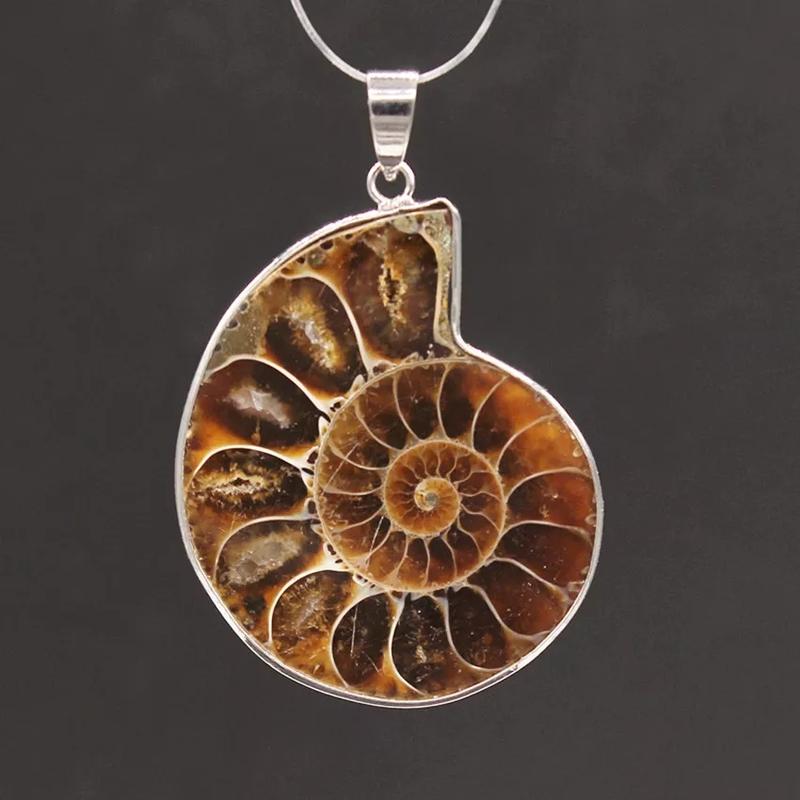 Кулон из натурального камня " Спираль вселенной". Описание: Морская окаменелость ( аммонит ) Размер приблизительно 3,75* 2,8*0,8 Аммониты - это минералы, которые миллионы лет назад были раковинами гигантских беспозвоночных моллюсков. Удивительные существа обитали на планете 400 миллионов лет назад . Сегодня этот удивительный камень музейного образца можно приобрести по доступной цене в виде украшений. Окаменелые раковины, закрученные в виде спирали выглядят как настоящие произведения искусства. + Цепочка с покрытием стерлинговым серебром 925 (55 см) Отличная сохранность. Очень красивый экземпляр.
