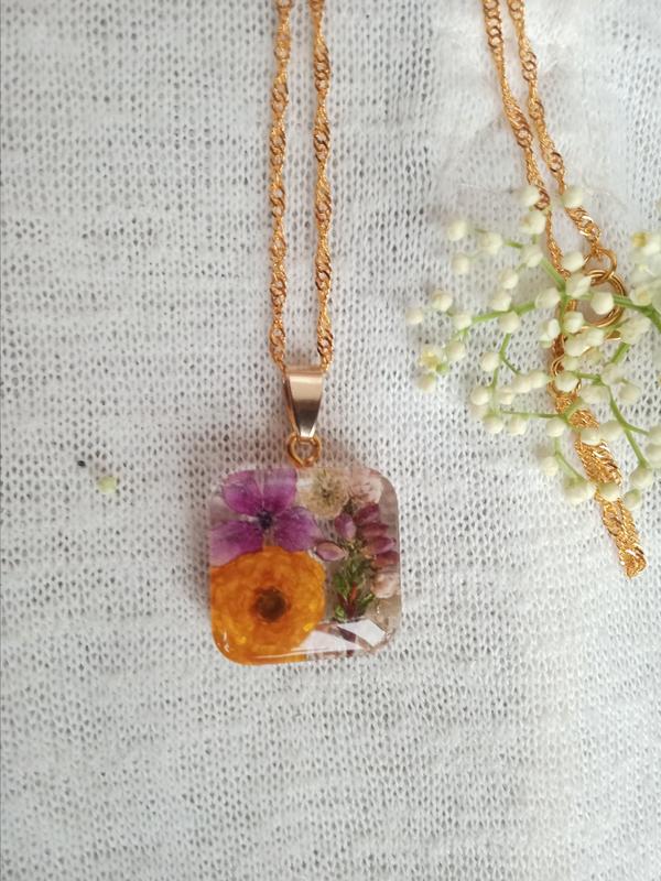 Кулончик з сухоцвітами лютика вересу та гортензії