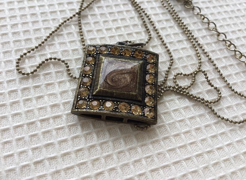 Ретро кулон 90х. Довжина ланцюга 60 см + 5 см додатково, объемна підвіска має форму квадрата розміром 2,5х2,5 см. Підвіска прикрашена гарячою перламутровою емаллю і скляними кристалами. Стан відмінний.
