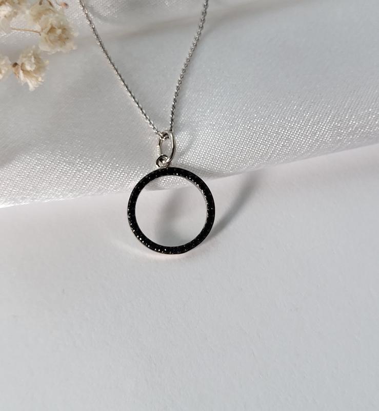 Срібна підвіска кулон коло з чорними каменями срібло 925 проби родоване пк2фо/1187 0.80г