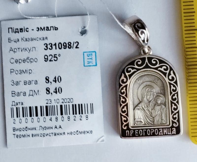 Підвіс срібний богородиця казанська 331098/2 емаль