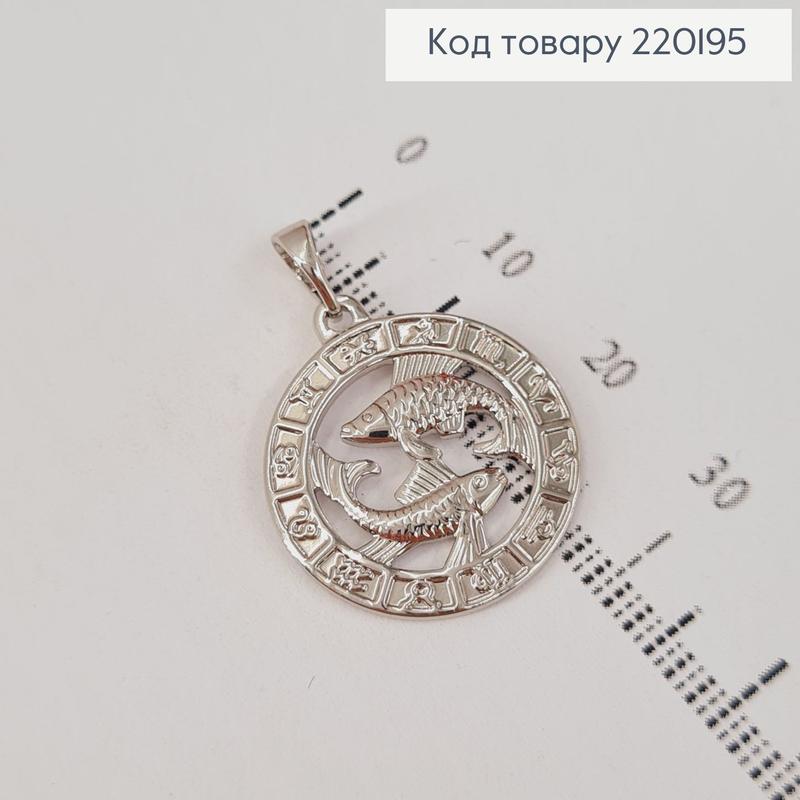 Кулон круглий сріблястий родований з медичної сталі знак зодіаку риби xuping 2см