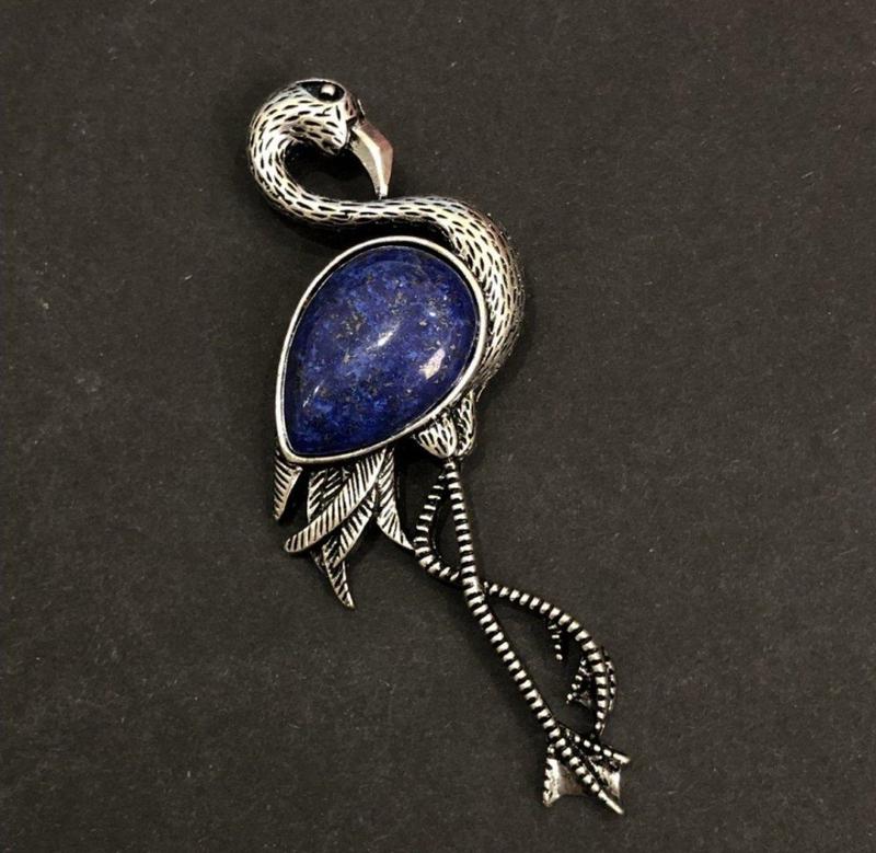 Брошка кулон Фламінго з натуральним каменем Лазурит 85х30мм