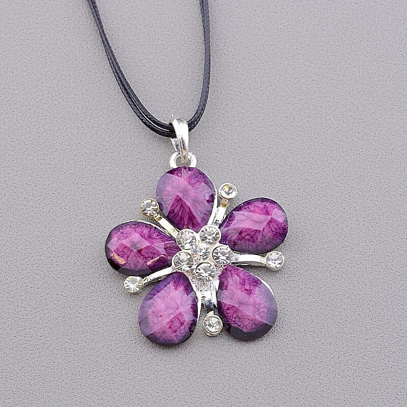 Артикул: 006246 Розмір кулона: 38х38 мм. Вага: 11 г. Довжина: 46 см. Камінь: Стрази Матеріал: Біжутерний сплав Покриття: гіпоалергенне Колір: Фіолетовий Колір: Срібний Колір: Чорний