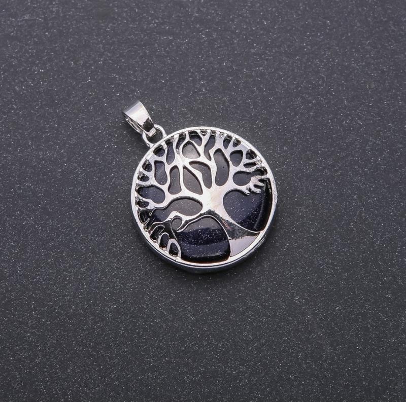 Кулон з каменю Авантюрин Синій Пісок Ніч Каїра (синт.) в оправі "Дерево" d-27мм