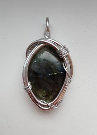 Авторский кулон из ювелирной проволоки и лабрадора. Не тускнеет, не ржавеет, гипоаллергенен. Плету кулоны и перстные, делают украшения разнообразными по заказу. Пересылаю Укр-почтой, Новой почтой. В кулон + подарочный мешочек для хранения украшений. Фото не редагированы.