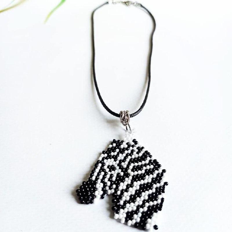 Кулон з бісеру, кулон на подарунок, зебра з бісеру, кулон з бісеру