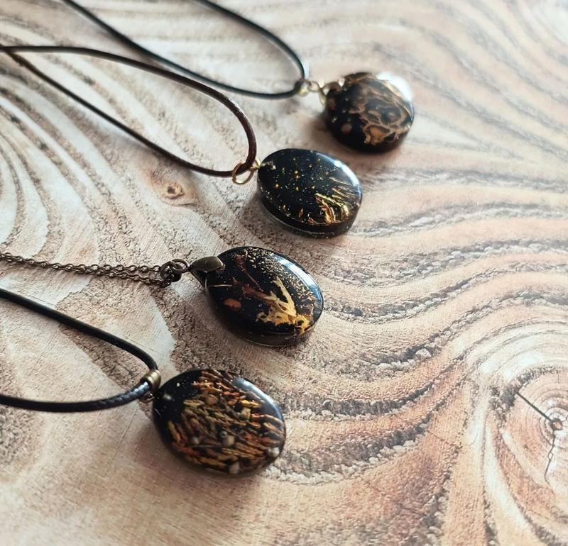 Кулони з натуральними квітами, мохом і грибом