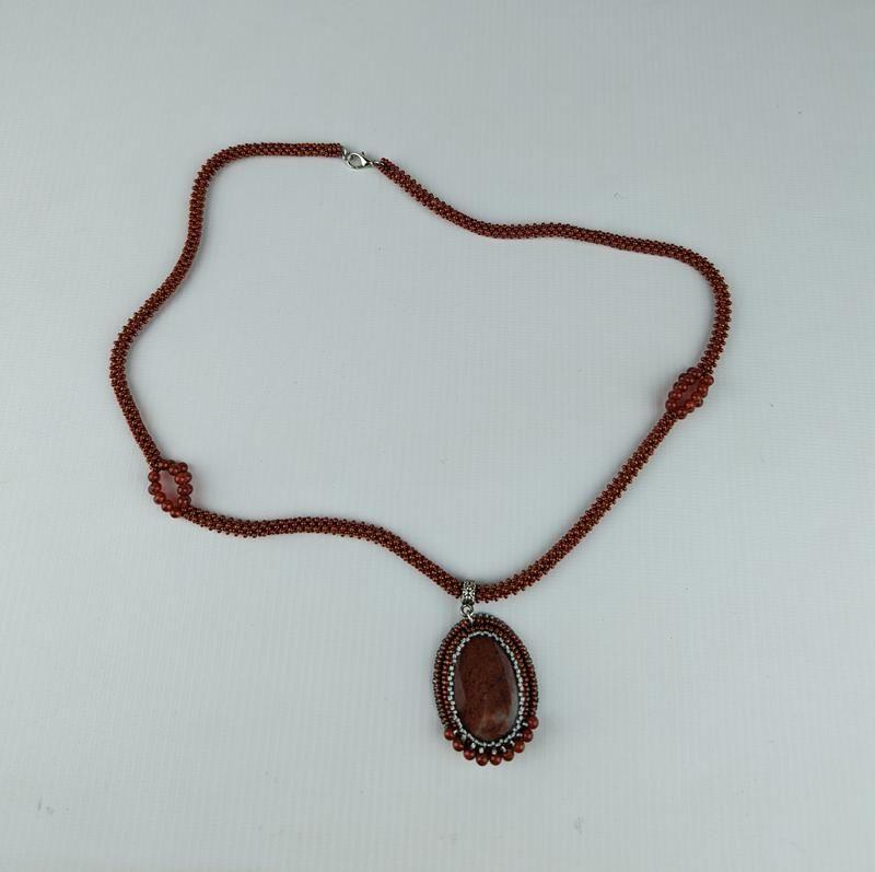 Кулон із бісеру та яшми