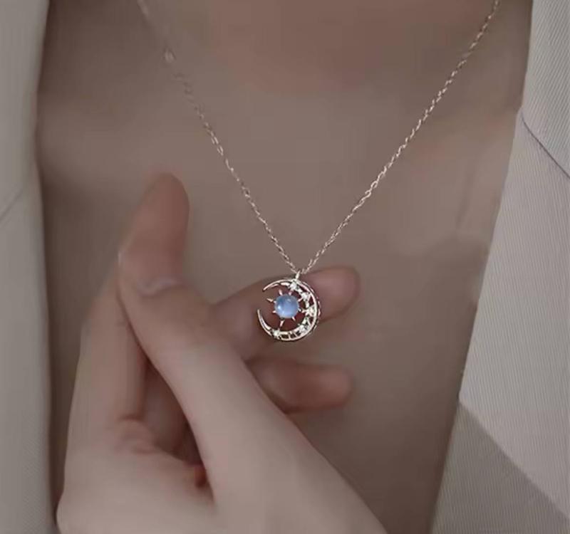 Подвеска на шею с цепочкой в форме луны и солнца с камушком. Состояние новое, материал качественный, на шее смотрится очень аккуратно и эстетично.