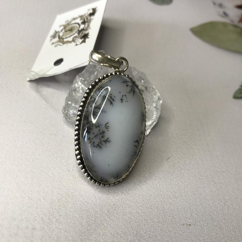Дендро-опал кулон овальный с дендритовым опалом в серебре индия