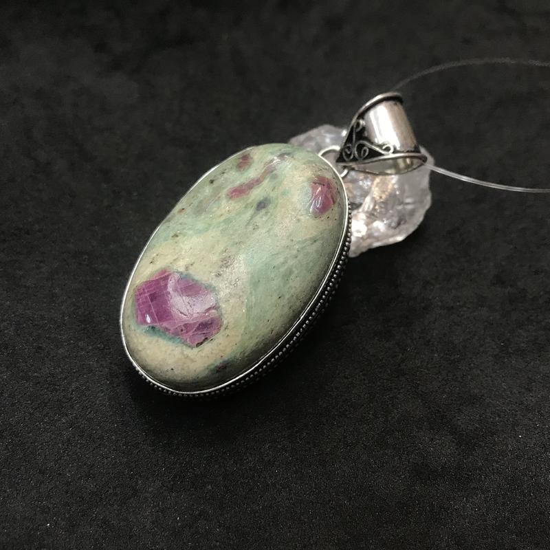 Кулон овал з натуральним каменем рубін в фуксите в сріблі кулон з рубіном фукситом індія!