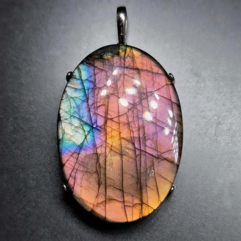 Кулон срібний з природним лабрадором райдужним рожевим рідкісним лабрадоритом велика підві...