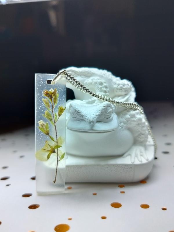 кулон на ланцюжку з епоксидної смоли, всередині справжня квітка зібрана вручну, на мотузці коштує 150₴