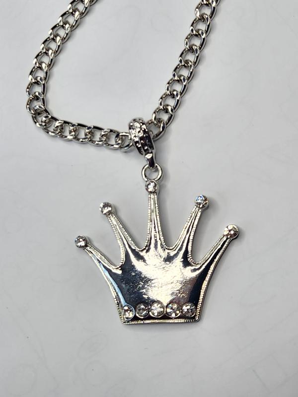 Кулон CROWN v2 з довгим ланцюжком, сплав, камінці-скло.
