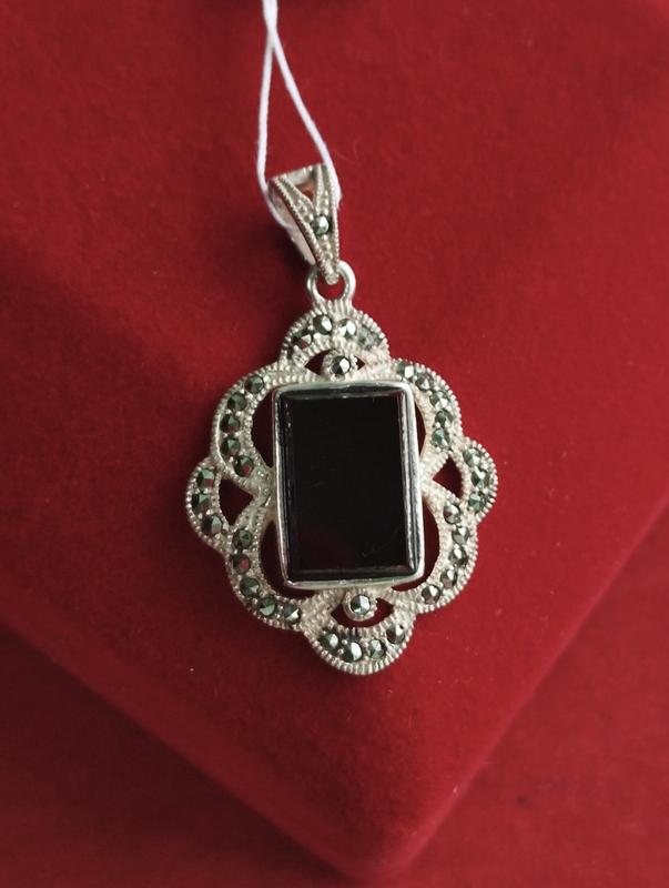 Срібна підвіска 925 проби із вставкою великого чорного Агату прямокутної форми та натуральних гематитів, вага виробу 5,30 грам.