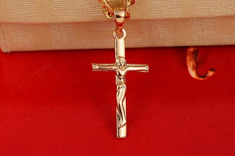 Хрестик Xuping Jewelry строгий стиль рівні краї 2,4 см золотистий ширина 1.2 см