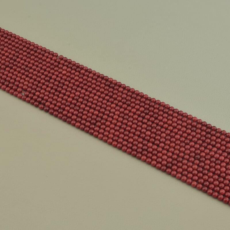 Розмір каменю Тип замочка: Без замка Довжина: 40 см. Діаметр: 3,8 мм. Якість: B Камінь: Корал (нат.) Колір: Червоний Форма товару: Кулька Вага: 8,1 г.